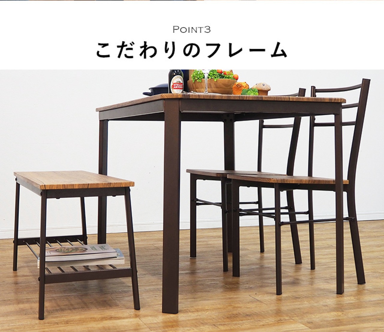 コンパクトなダイニング4点セット。片側ベンチタイプ。